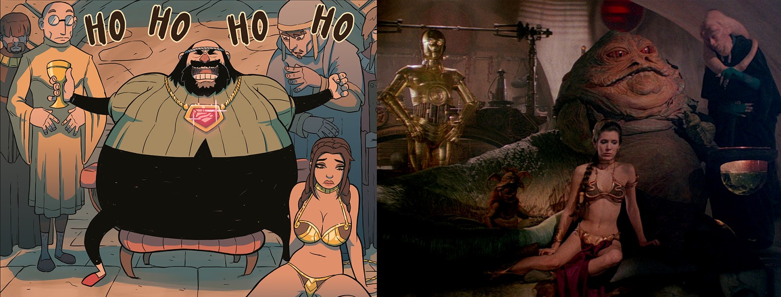 Jabba the Hutt grazie all’accostamento di una schiava vestita da Leia Slave per